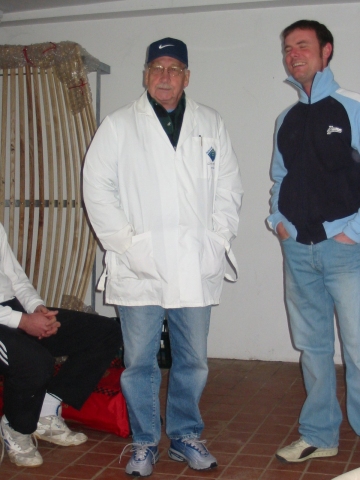 ![]() Having lost the toss we're batting first. Ten minutes later there's beer on the table and our wickets are falling like nine pins. Still the lads try to stave off the effects of a biting wind by keeping warm with a spot of pocket billiards. |
