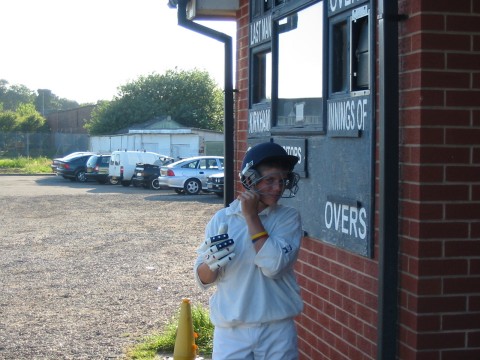 And at the other end, despite wearing restrictive orthodox trousers, Dave's also keen to get in on the batting action as he smites another boundary. Blimey ! It's only 5 overs into the game and the 50 is up. Cunningly the Jollys clap ever so mildly so as not to alert the opposition to the phenomenal run rate. |
